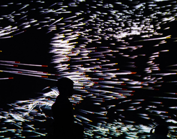 《太陽粒子》展現的是太陽粒子的能量運動。太陽是太陽系中心的恒星,是等離子體與磁場交織的一個理想球體,太陽采用核聚變的方式向太空釋放光和熱。體驗者可以伸手觸摸,和太陽粒子發生交互反應,產生微能量場。該項目意在借助數字媒體動畫表現手法,向體驗者科普太陽和太陽粒子的能量反應和能量聚合。
