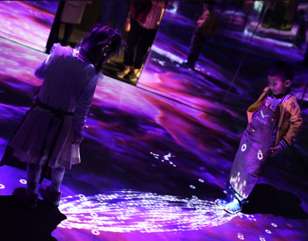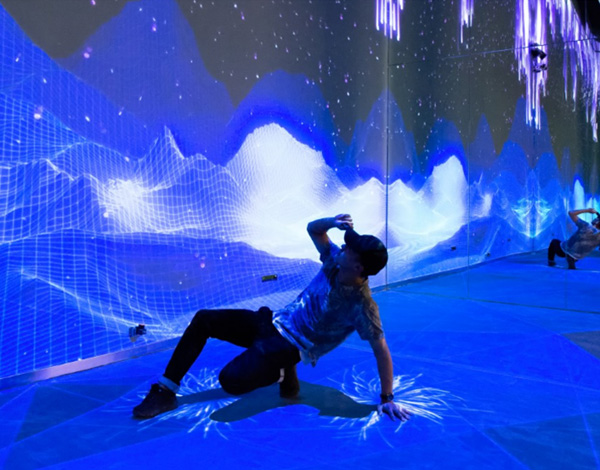 《登陸銀河系》把未知遙遠的銀河系帶到體驗者的腳底,體驗者每一個腳步都會產生粒子,這些自帶光圈和紐帶的粒子,如同銀河系中的小星系。當地面和身上的粒子彼此碰撞時,粒子化作點點星光,彷佛星系之間發生的物理化學反應。激發體驗者學習探索物理科學和銀河系的知識。